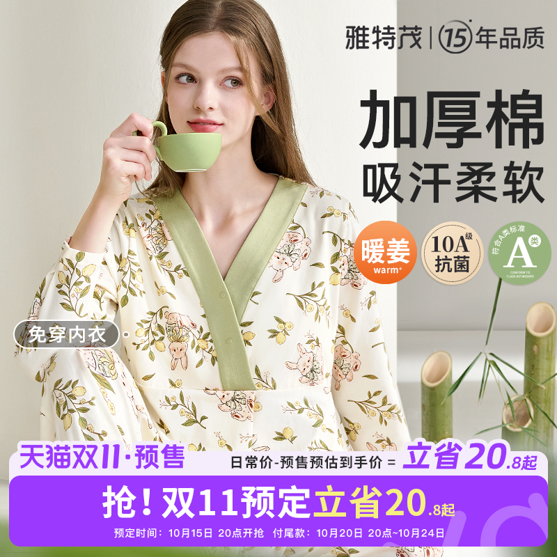 雅特茂月子服纯秋冬产后棉孕妇睡衣产妇喂奶哺乳衣孕期秋衣家居服