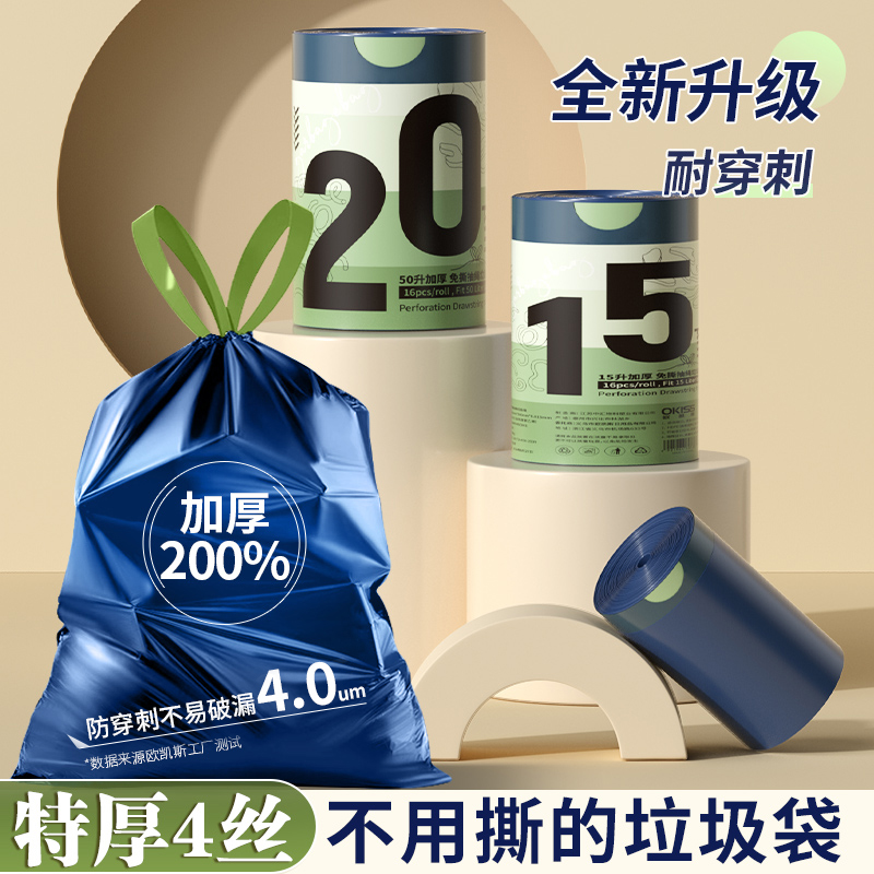 抽绳垃圾袋加厚不脏手自动收口垃圾袋手提式塑料袋家用厨房垃圾袋