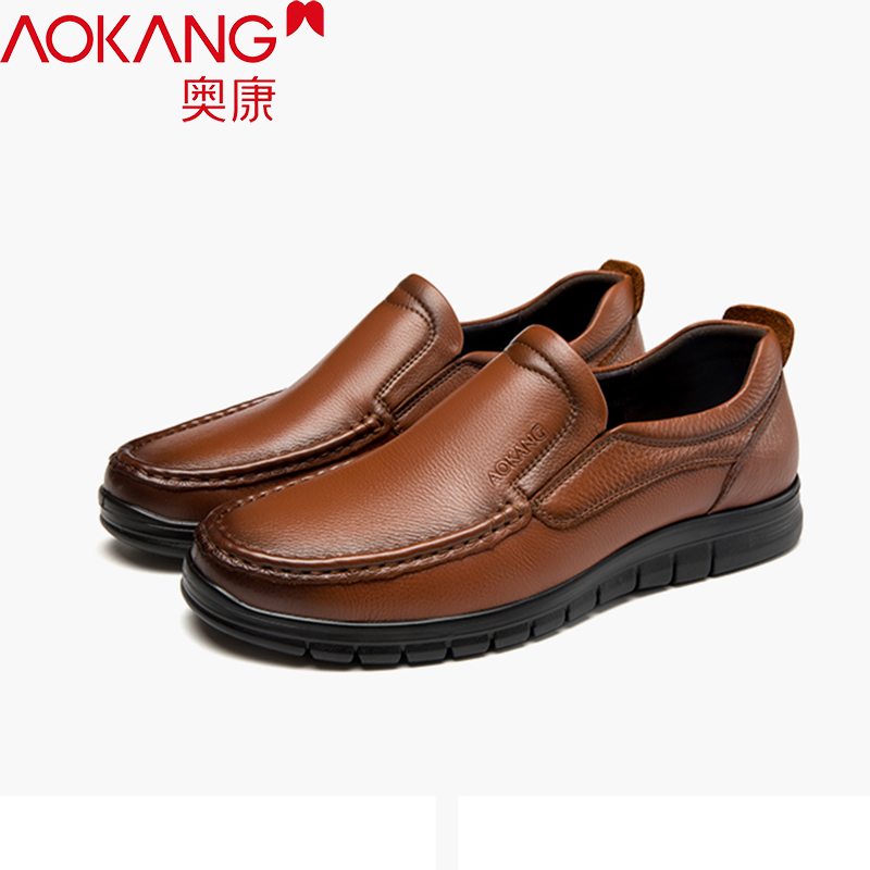 奥康男鞋官方旗舰店春秋款商务休闲皮鞋男真皮舒适百搭套脚爸爸鞋