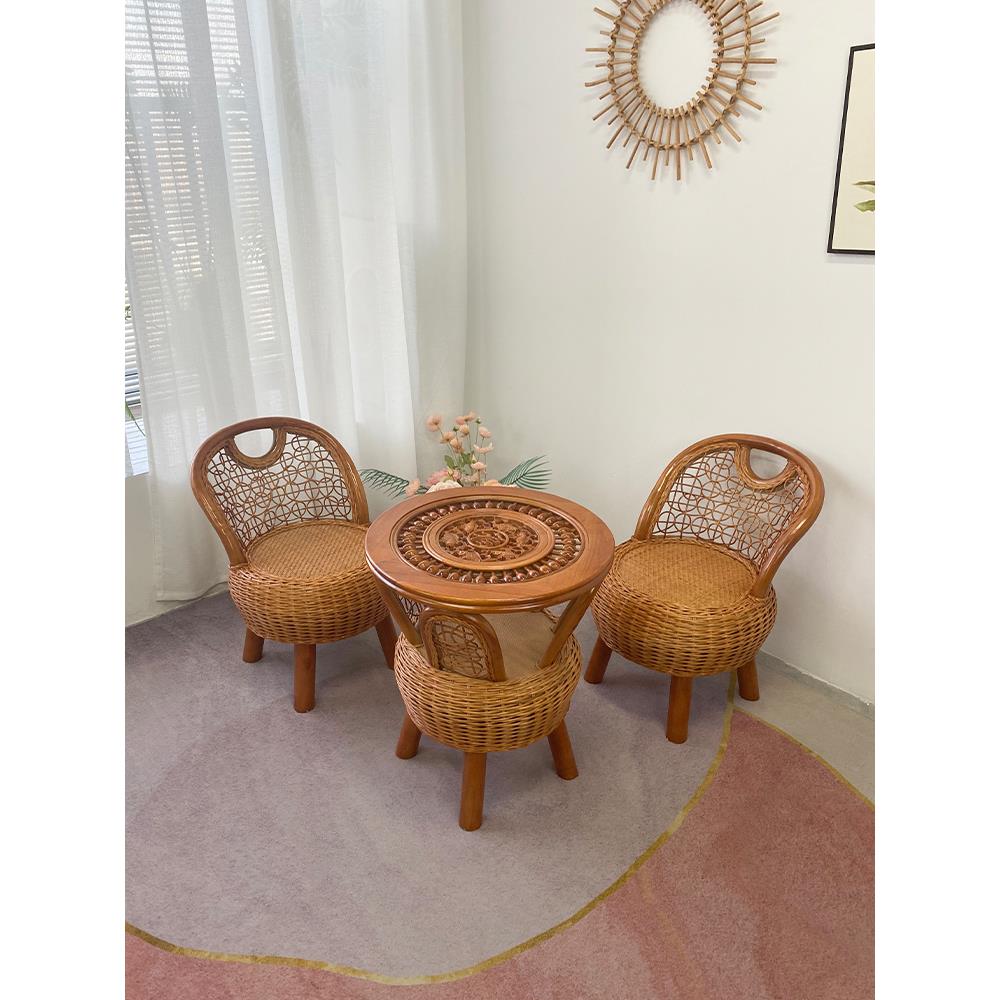真藤椅子茶几三件套客厅休闲椅室内桌椅成人靠背椅阳台乘凉藤编椅