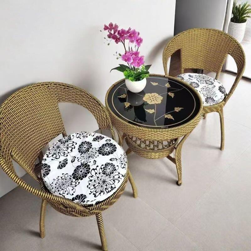 简约休闲客厅茶几家用圆桌真阳台高背藤椅三件套靠背椅茶桌椅组合