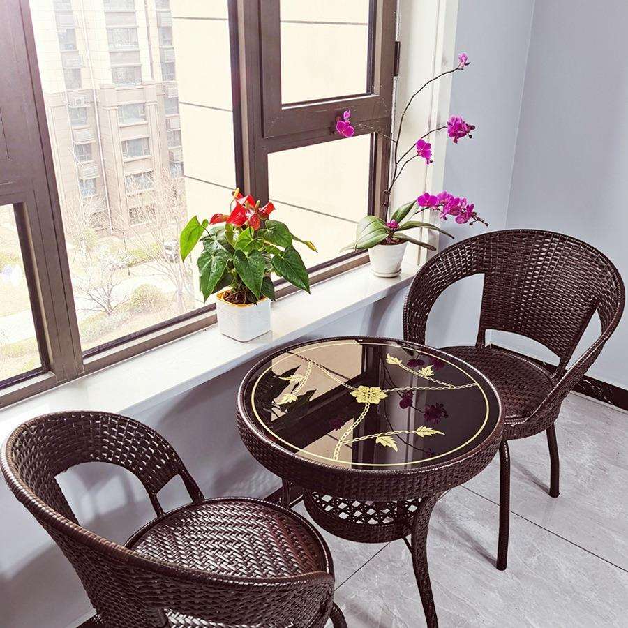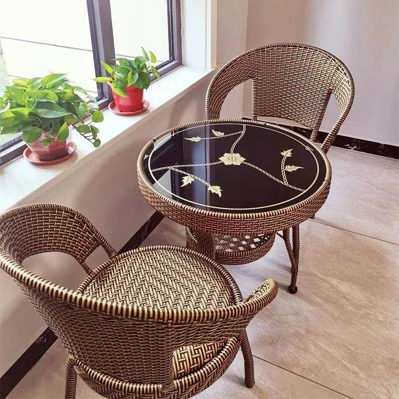 阳台小桌椅休闲区布置客厅藤椅三件套家用椅子露天岩板藤编茶桌椅