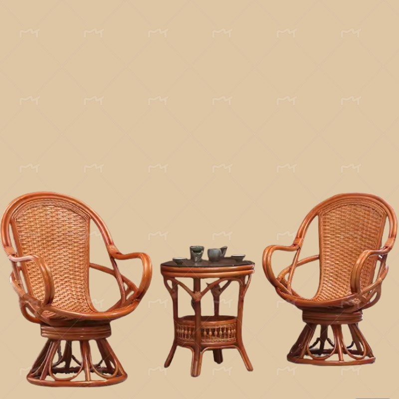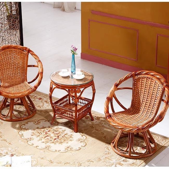 天然真藤椅三件套旋转椅子桌椅茶几阳台客厅休闲藤编靠背家用椅子