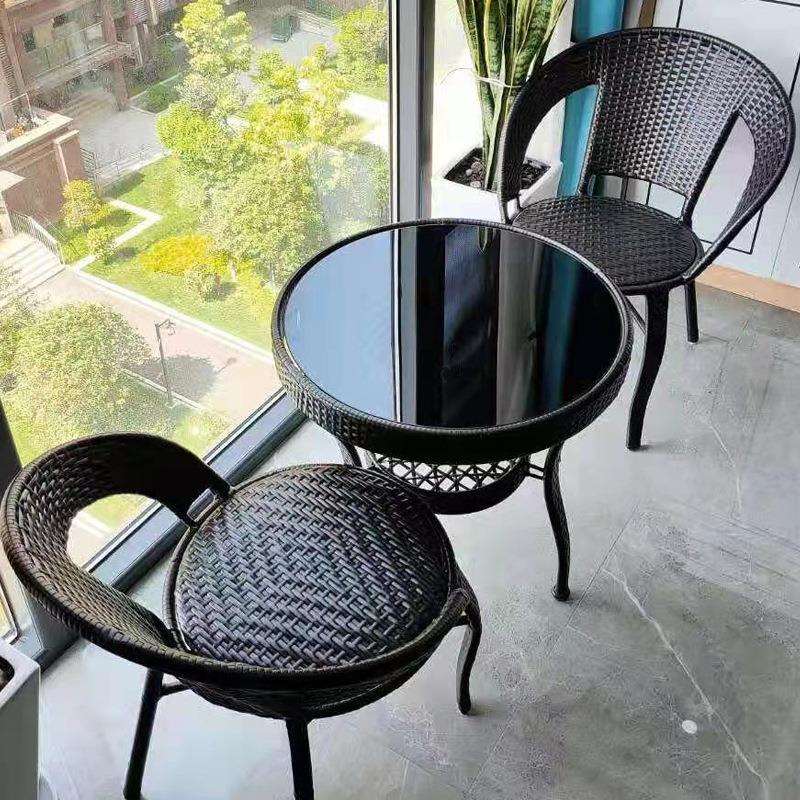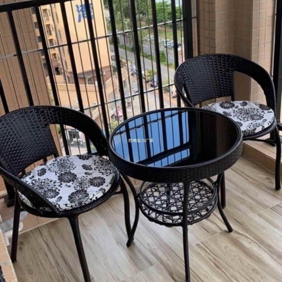 茶几客厅阳台户外桌椅玻璃桌子圆形茶台椅子藤椅三件套茶桌小茶几