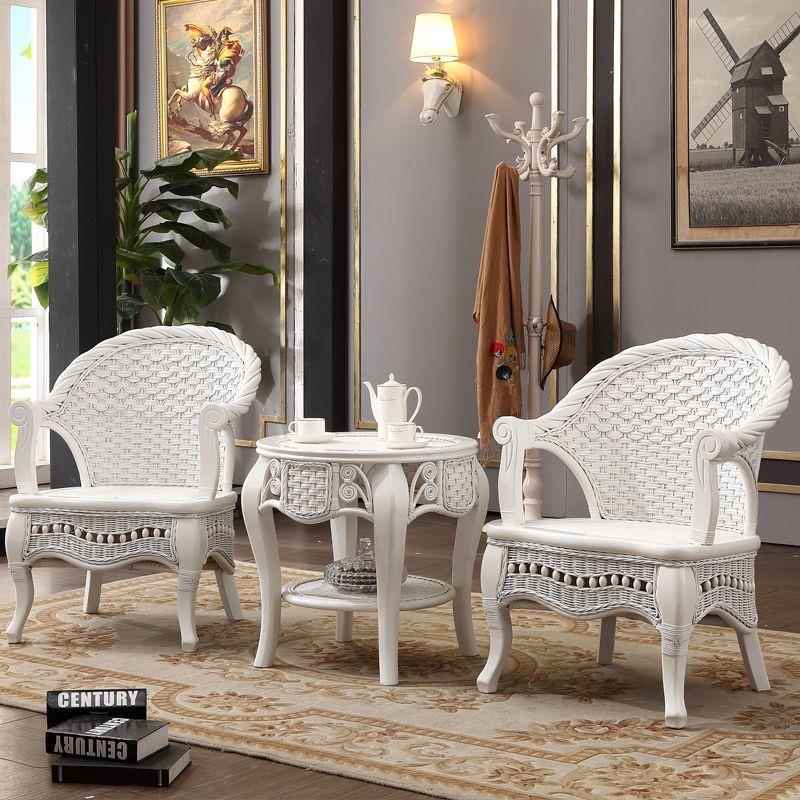 欧式藤椅三件套阳台桌椅茶几组合白色客厅藤编织单人休闲靠背椅子