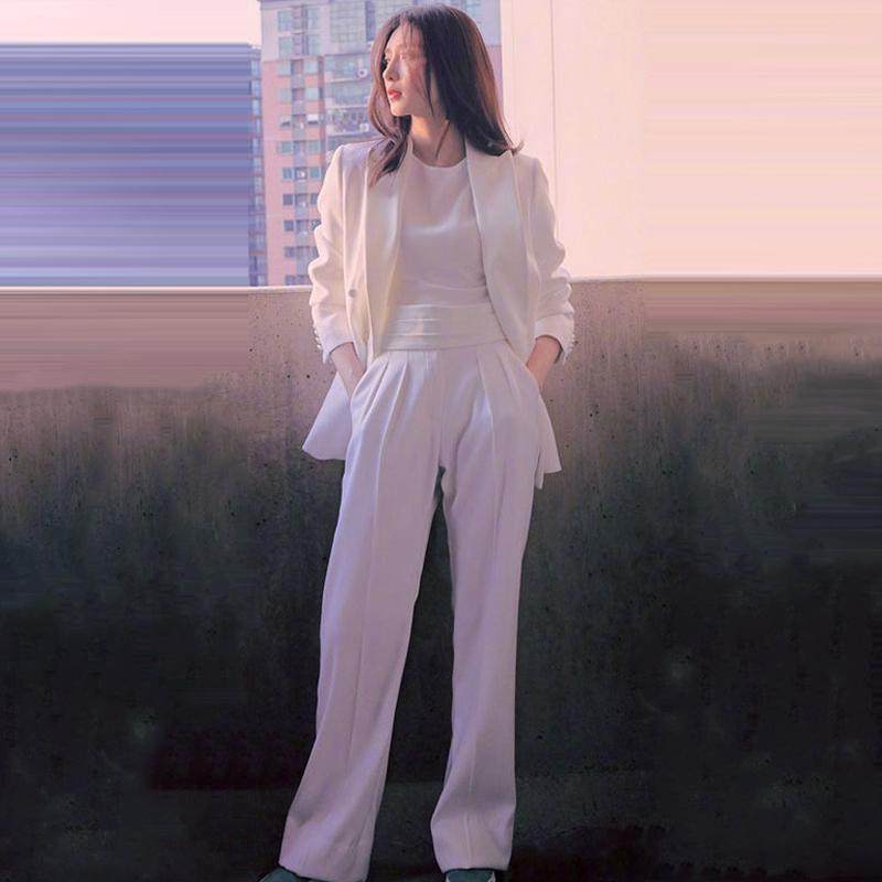 名媛气质简约白色西服外套长裤三件套职业女装时尚显瘦西装套装潮