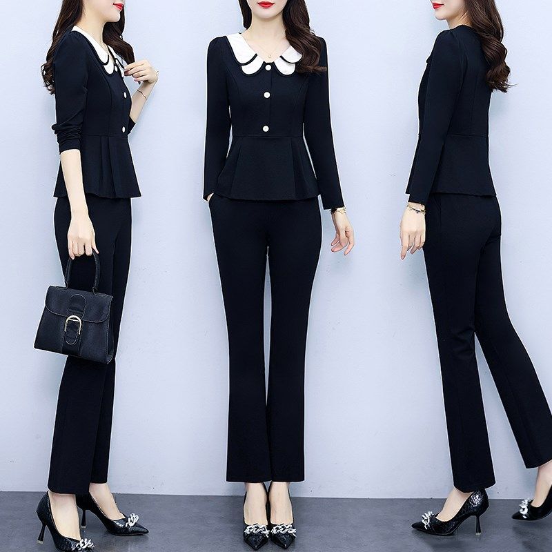 大码女装轻奢黑色修身西装长裤子套装2025秋季新款时尚职业两件套