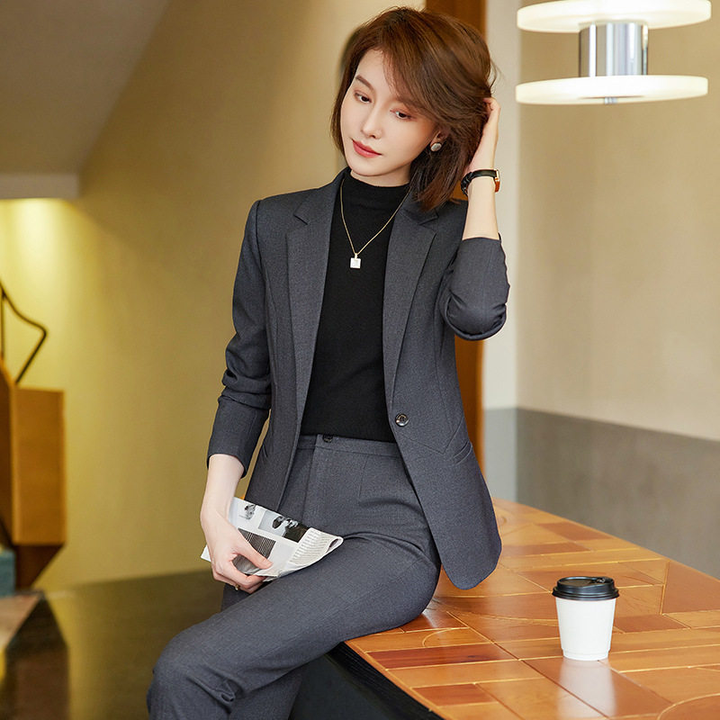 春秋长袖职业装女装套装长裤气质小西装正装工作服职业套裙两件套