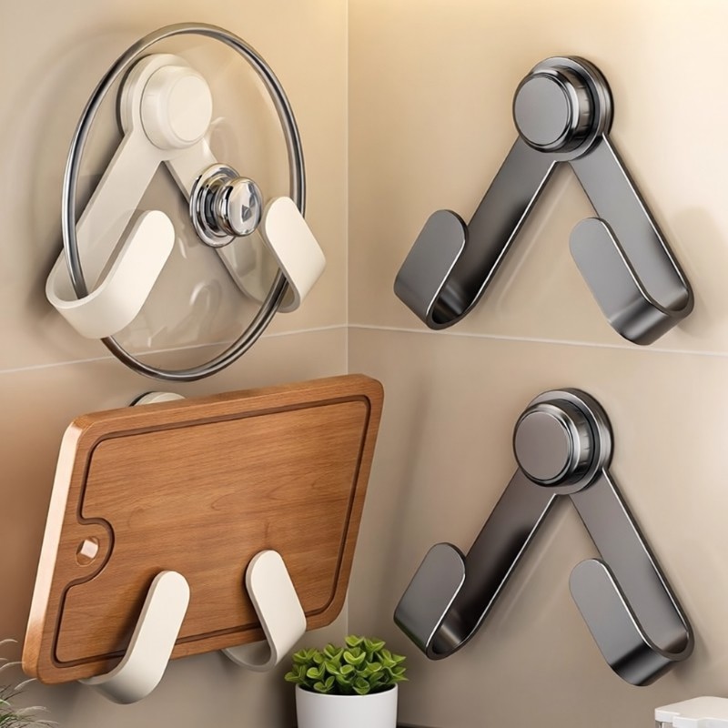 奶油吸盘旋转锅盖架壁挂式免打孔厨房置物架收纳挂架菜板架砧板架