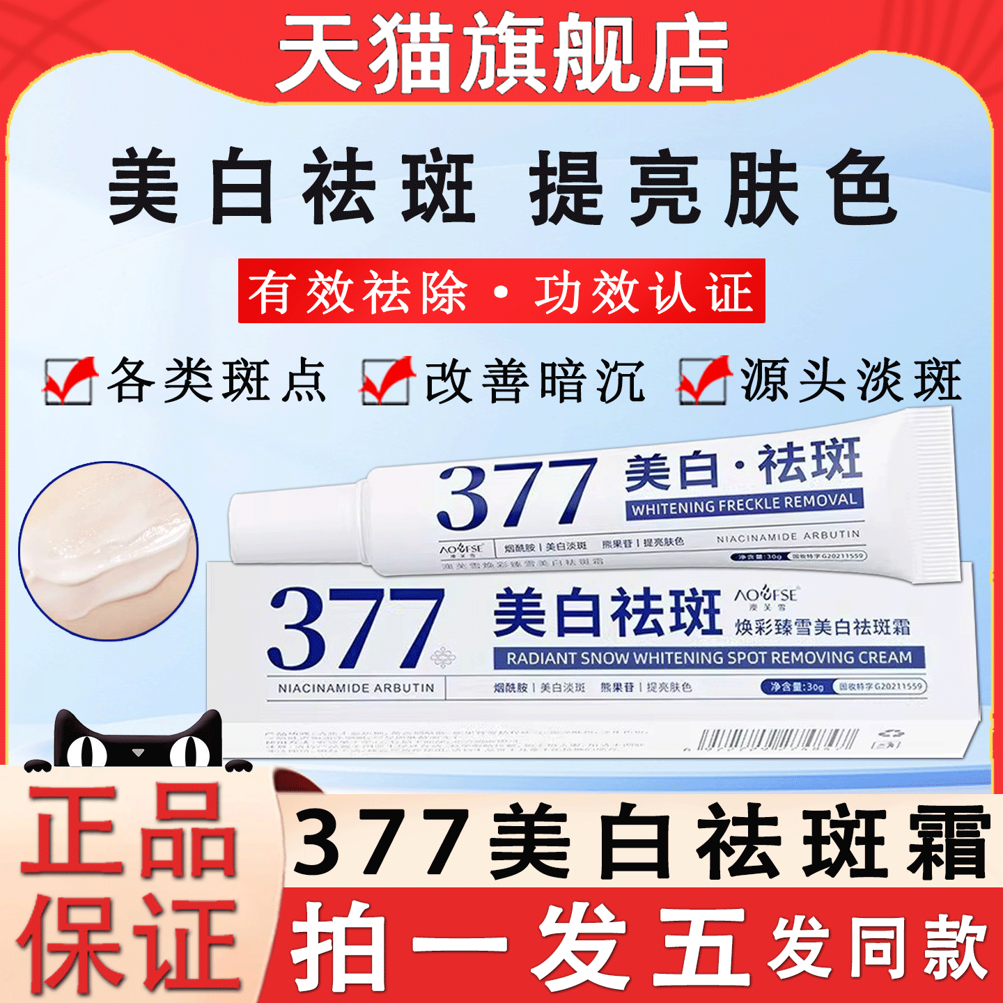 377美白祛斑霜去斑祛黄褐斑雀斑老年斑淡化色斑官方旗舰店正品