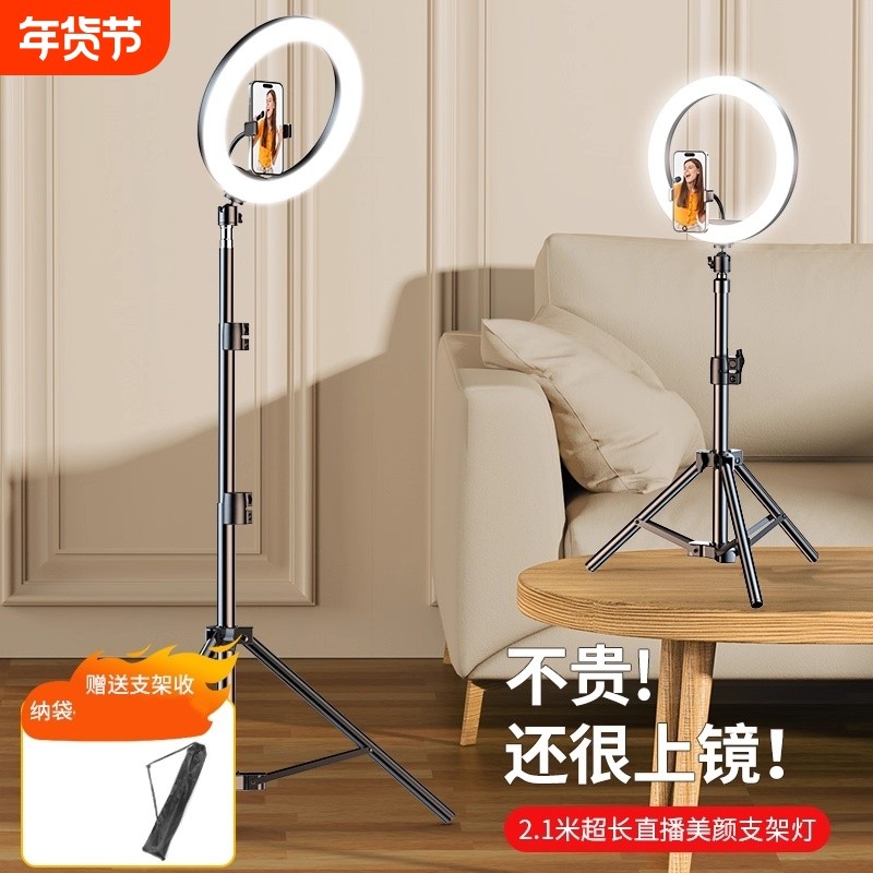 手机直播补光灯大号室内专业高清美颜主播网红户外拍照抖音设备单独灯便携落地式多功能防抖拍摄三脚架