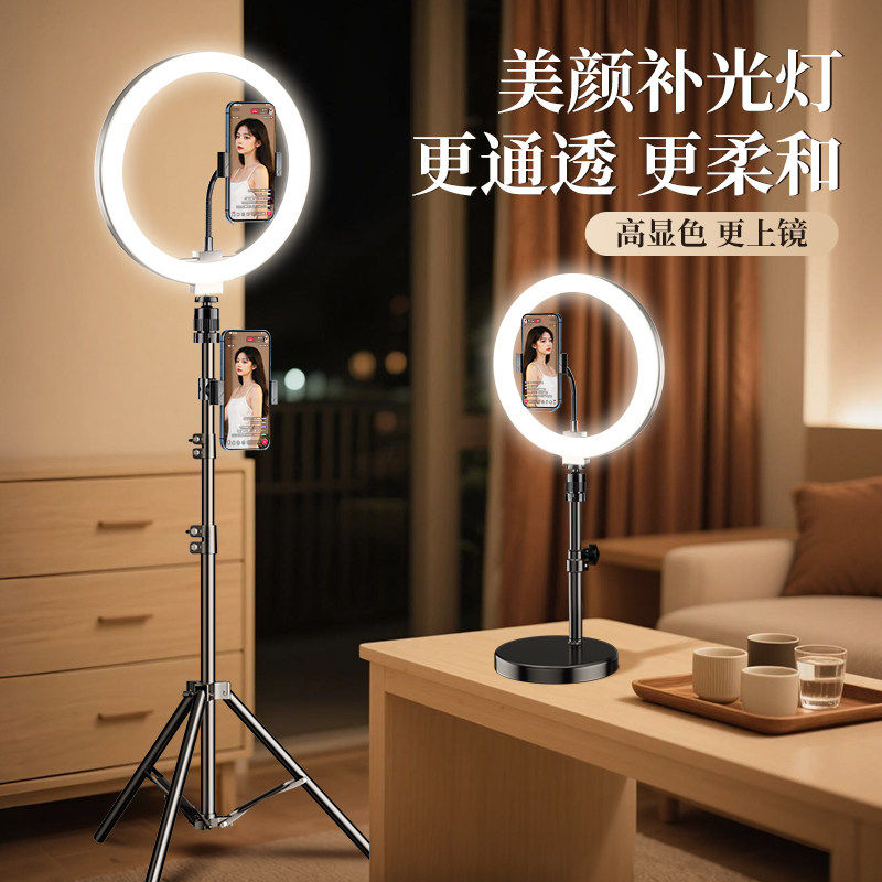 【美颜补光灯】2026新款手机直播补光灯主播专用led桌面网红美颜拍照自拍环形摄影柔光拍摄视频专用户外支架