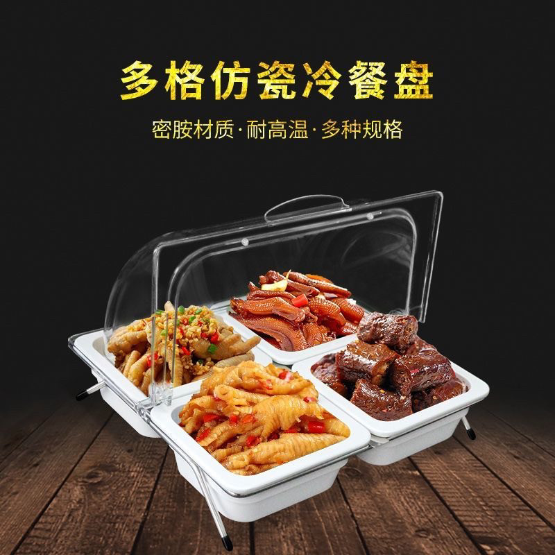 创意双格水果盘分格凉菜冷餐托盘甜品盘带盖自助餐台不锈钢展示架