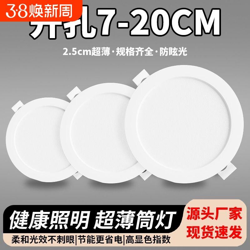 LED超薄筒灯嵌入式暗装天花洞灯3cm内可装客厅餐厅家用无主灯商用