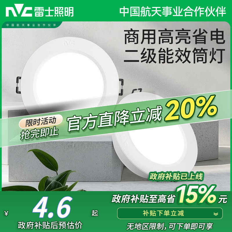 雷士照明25新款LED超薄筒灯客厅天花板孔灯家用嵌入式过道无主灯