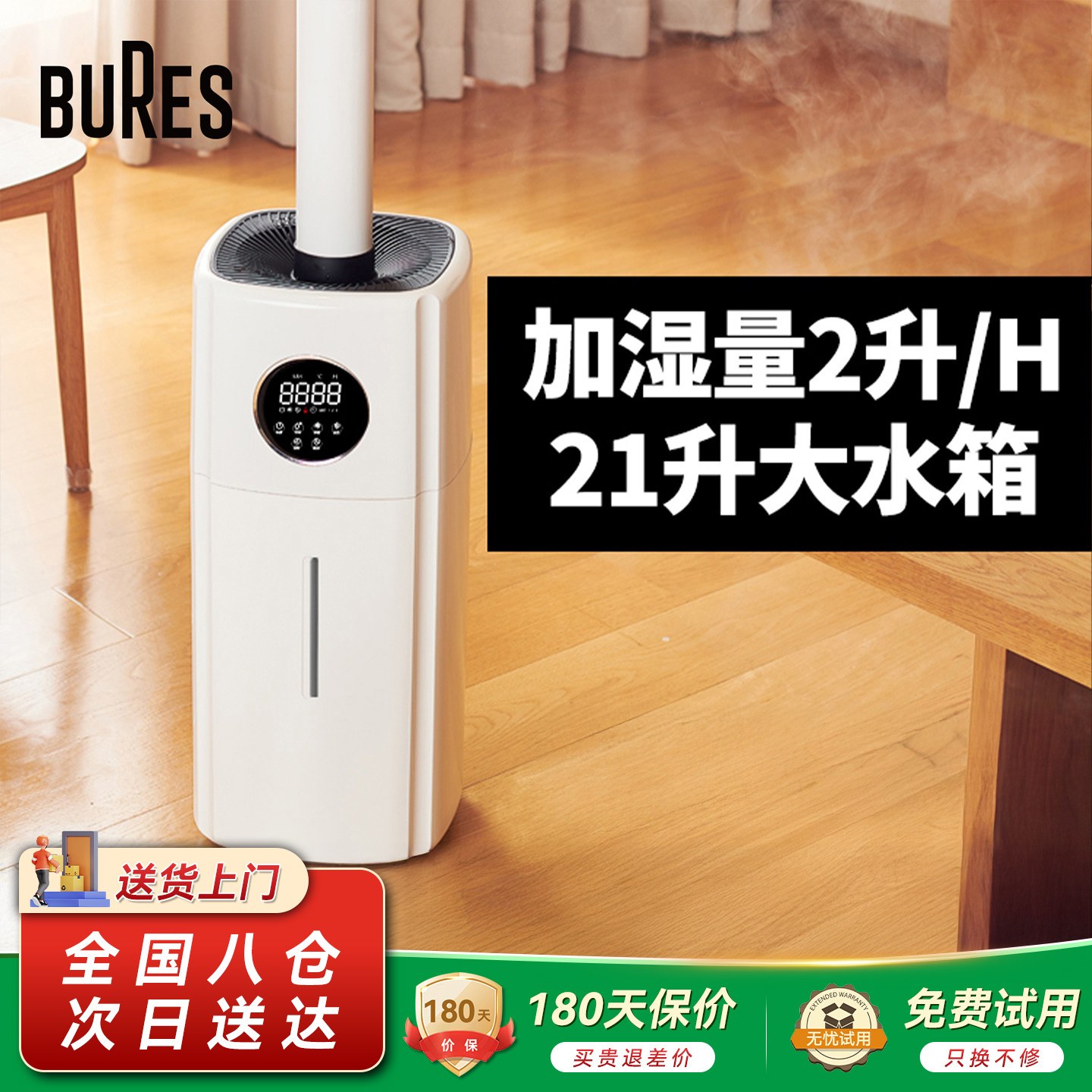 bures百而思客厅大喷雾量加湿器家用卧室大型容量孕妇婴儿落地机