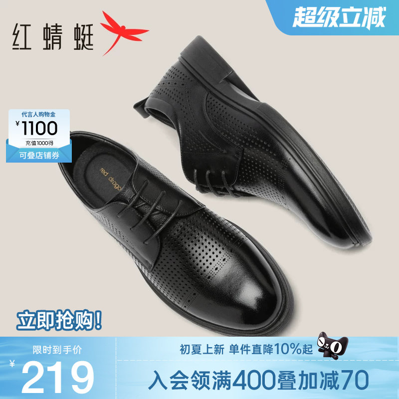 红蜻蜓男鞋夏季新款镂空牛皮德比鞋男商务透气正装皮鞋真皮皮凉鞋