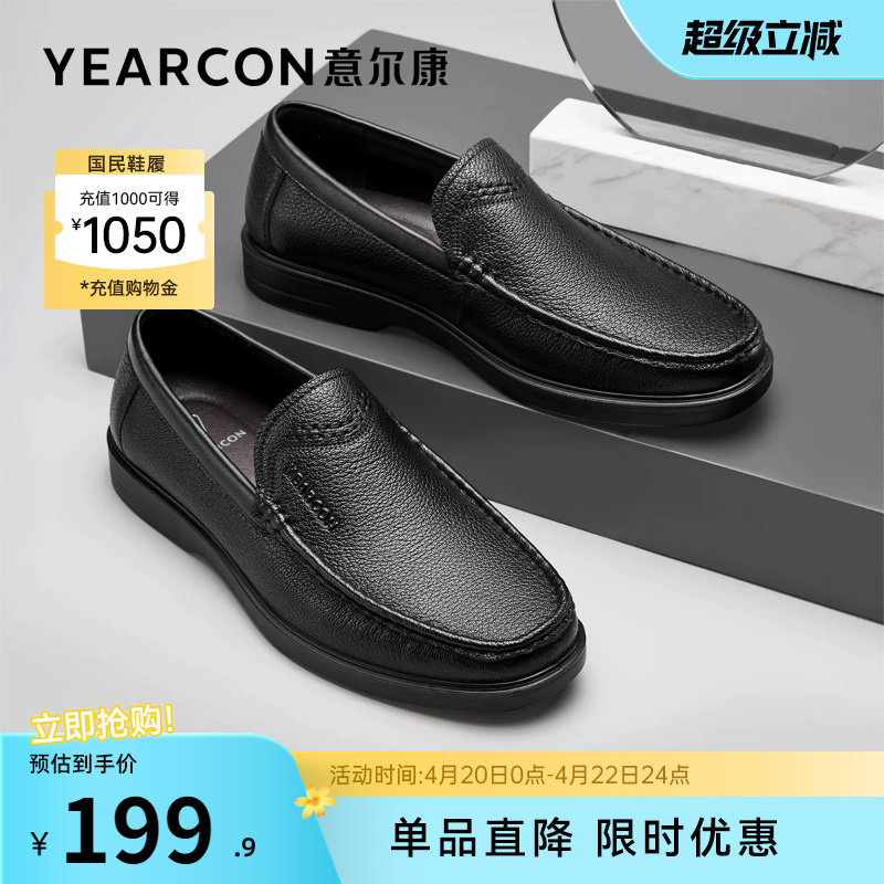意尔康男鞋真皮商务休闲皮鞋男士中年爸爸鞋子男款大码软底一脚蹬