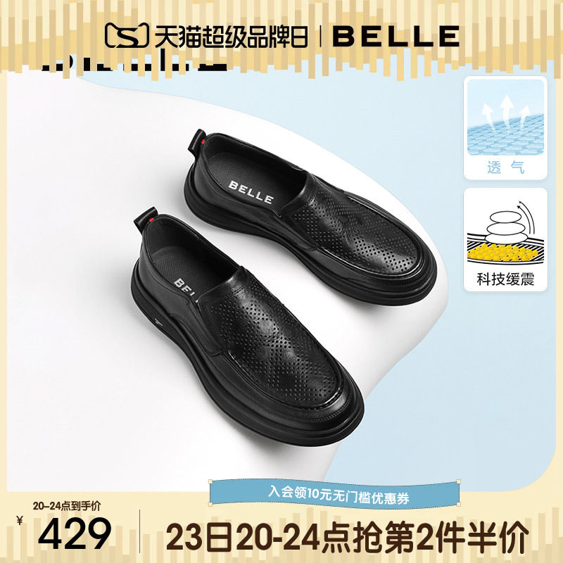 百丽男士软底商务休闲皮鞋夏季新款一脚蹬透气真皮爸爸鞋子A1010A