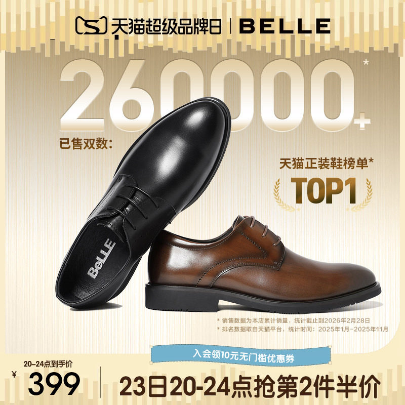 百丽男士春夏款透气正装商务德比内增高真皮鞋子结婚鞋新郎10822C