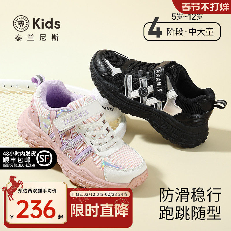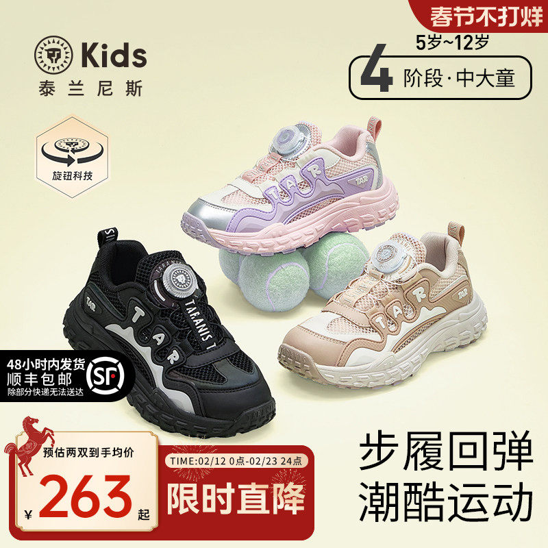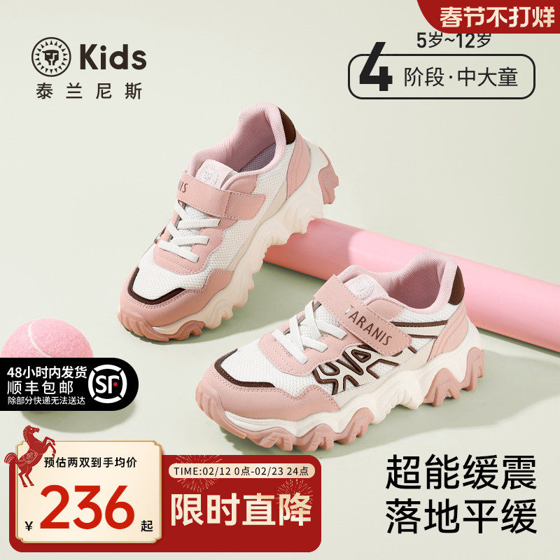 泰兰尼斯kids春款中大童运动鞋男童潮酷老爹鞋女童甜美跑步鞋