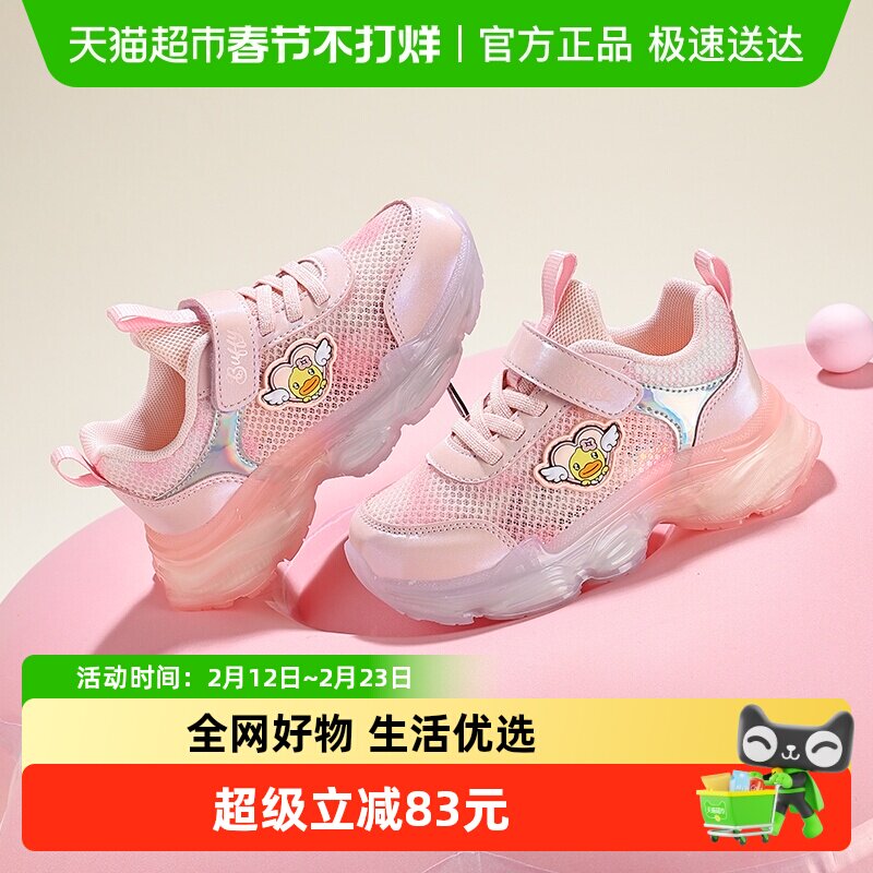 bduck小黄鸭童鞋女童春款运动鞋亮灯发光鞋新款网面儿童老爹鞋潮