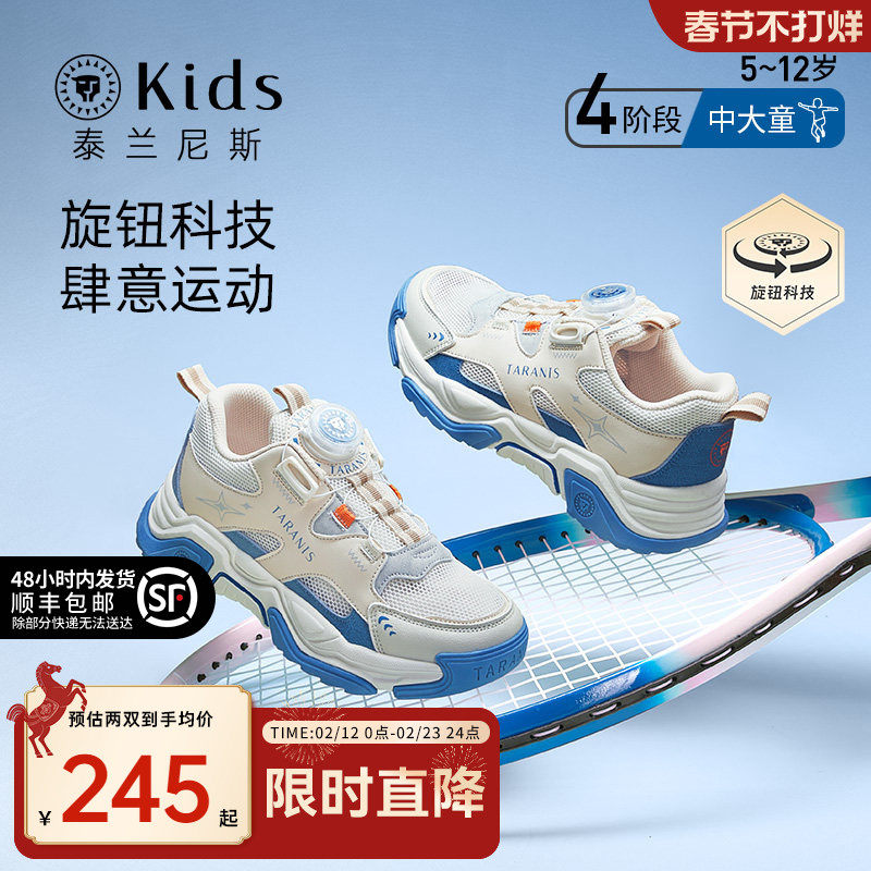 泰兰尼斯kids春款中大童运动鞋女童校园体训鞋男童旋钮跑步鞋