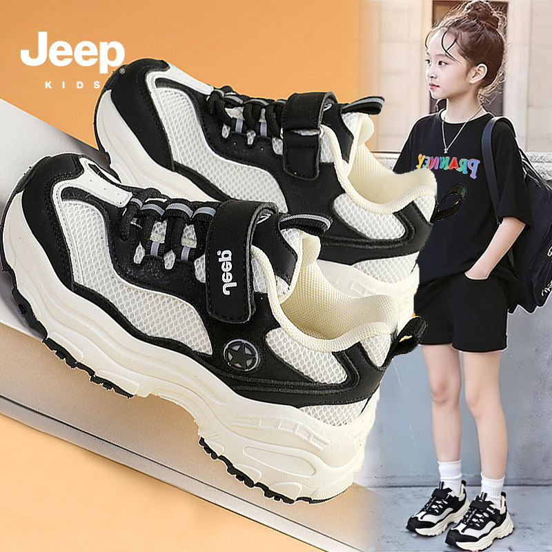 jeep童鞋女童春款2026新款潮流百搭休闲老爹鞋厚底增高儿童运动鞋