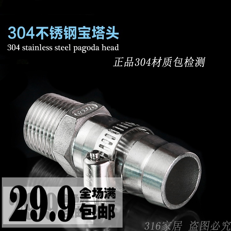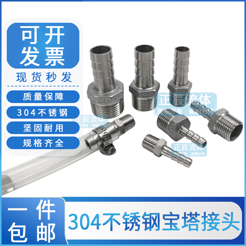304不锈钢宝塔接头1寸六角接水管软管皮插2分4分6分316外丝宝塔头