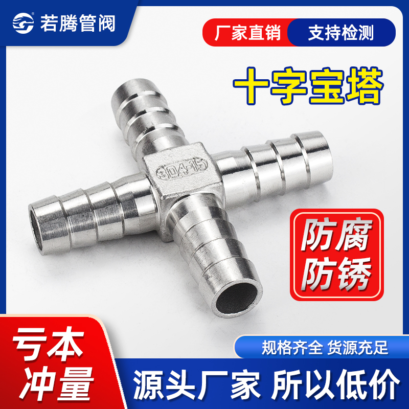 304不锈钢宝塔接头十字四通分水煤气燃气皮管软管格林头快插配件