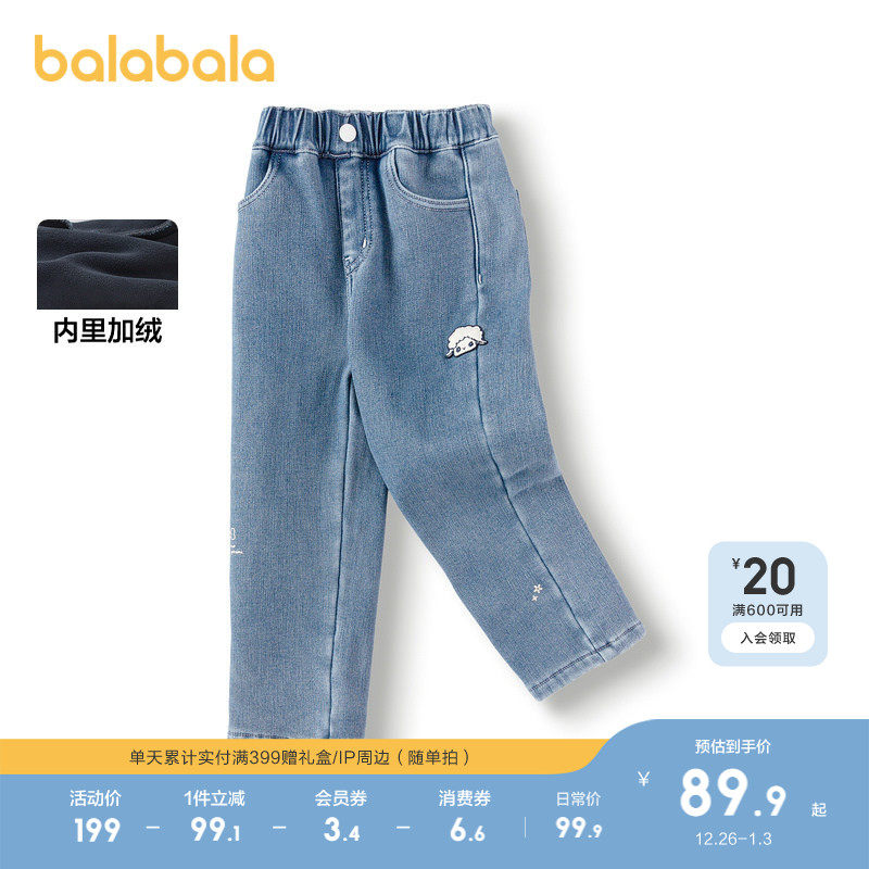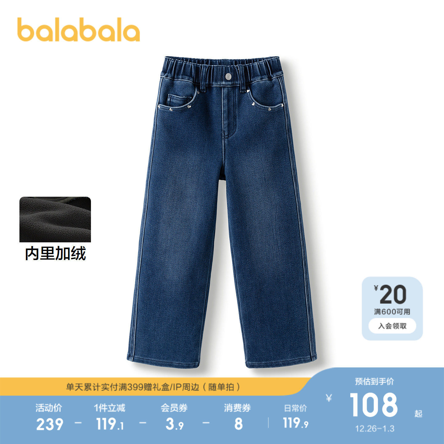 巴拉巴拉童装女童裤子冬装加绒牛仔长裤儿童保暖直筒裤甜美时尚潮