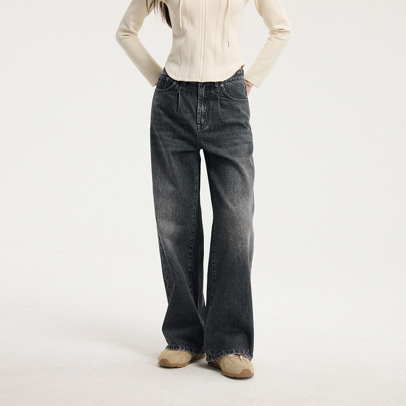 广角裤 太平鸟大直筒牛仔裤2025年秋冬新款宽松加绒阔腿牛仔裤女