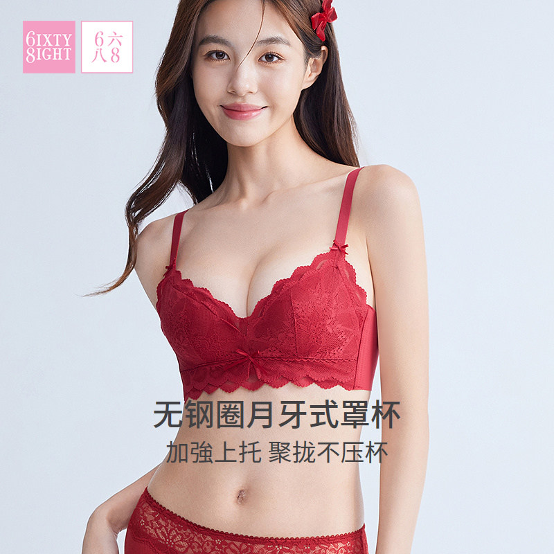 【小胸聚拢】68蕾丝内衣女秒升杯超柔软面料舒适防下垂红色文胸罩