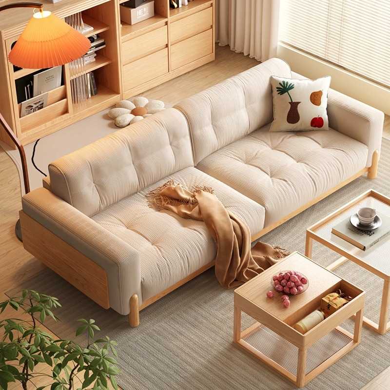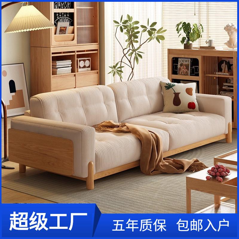 日式沙发小户型实木简约现代客厅原木风奶油系猫抓布艺灯芯绒沙发