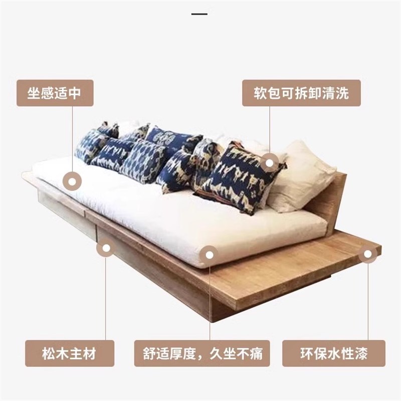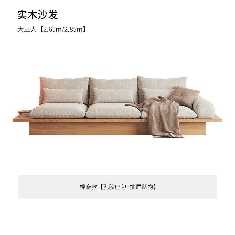 日式沙发实木框架客厅小户型北欧简约储物三人地台布艺原木侘寂风