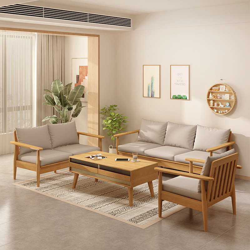 北欧原木风客厅可拆洗猫抓布简约直排小户型三四人位实木日式沙发