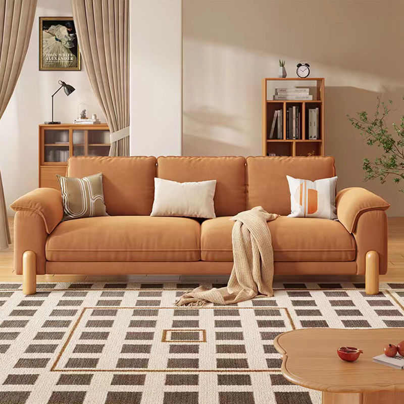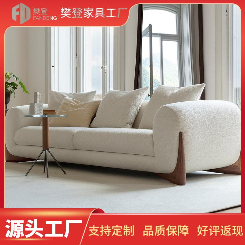 新款直销日式沙发小户型实木简约现代客厅原木风奶油系猫抓布艺灯
