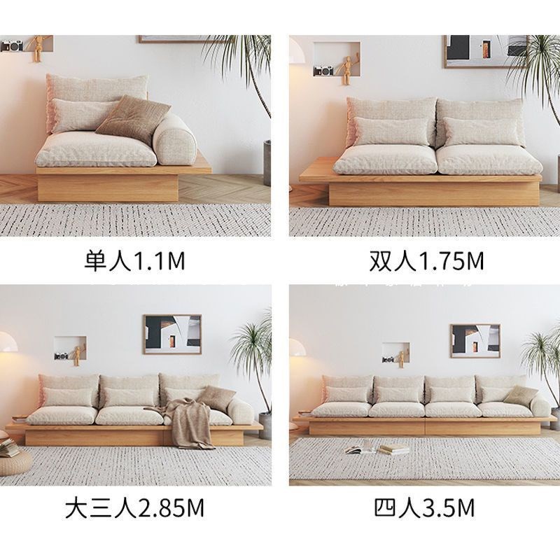 日式沙发实木框架客厅小户型现代简约储物三人地台布艺奶油原木色