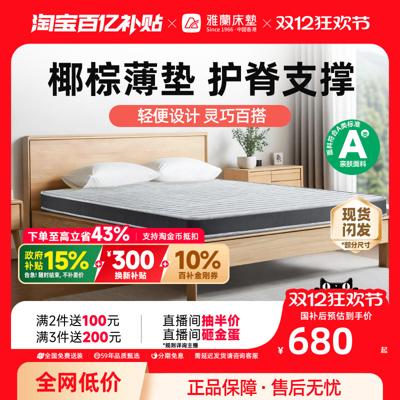 【硬核】雅兰床垫椰棕黄麻护脊儿童薄硬垫折叠榻榻米乳胶学生床垫