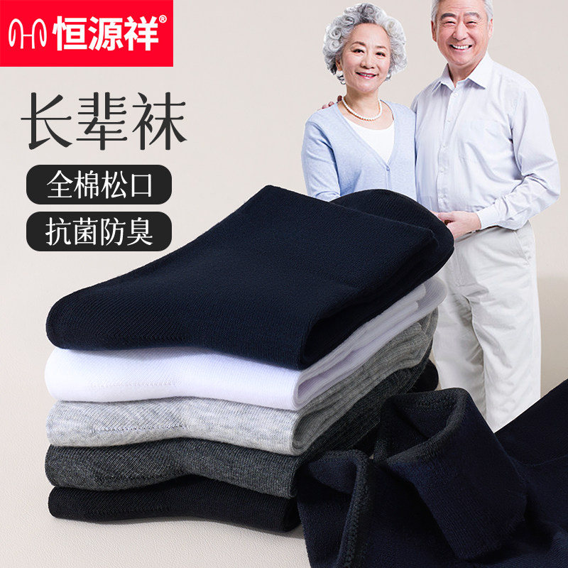 恒源祥纯棉松口袜子男士老人秋冬棉袜中筒大码老年人夏季薄款长袜
