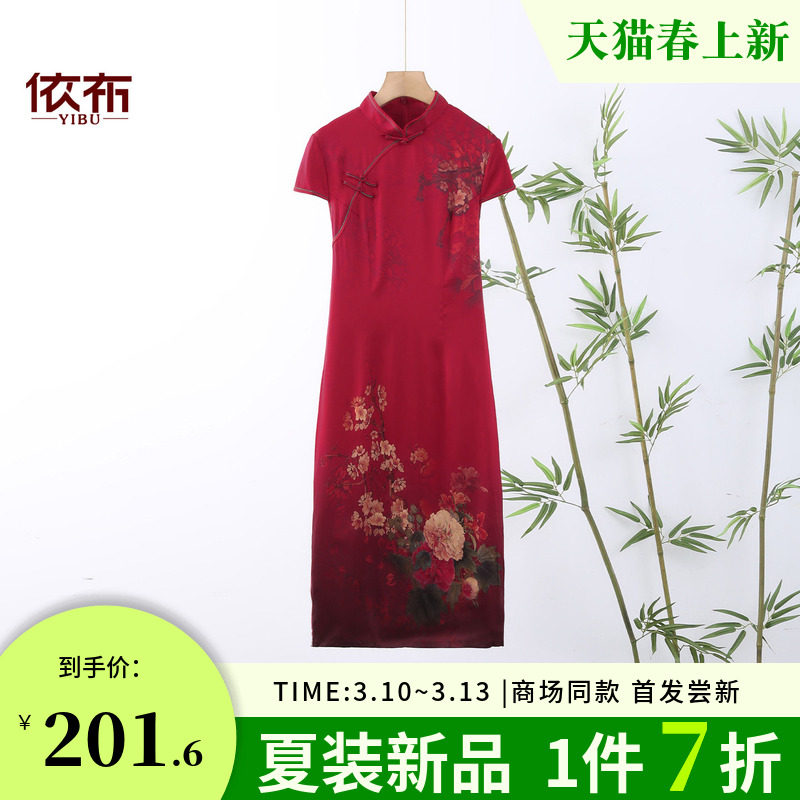 依佈中老年女士气质真丝连衣裙改良式旗袍裙优雅妈妈装桑蚕丝裙子