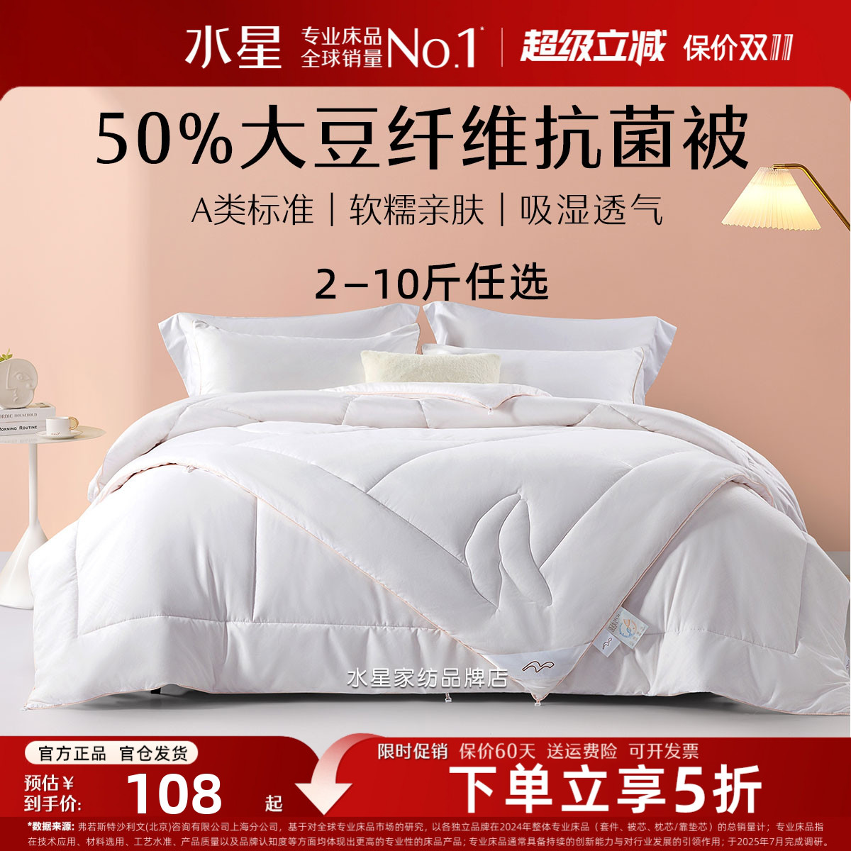 水星家纺被子加厚冬被A类抗菌春秋被大豆纤维被芯二合一子母被8斤