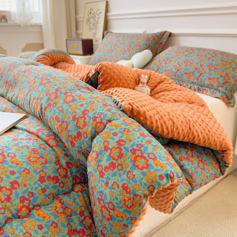 复古花卉牛奶绒豆豆被子冬被单双人加厚保暖棉被冬天加绒被芯8斤6
