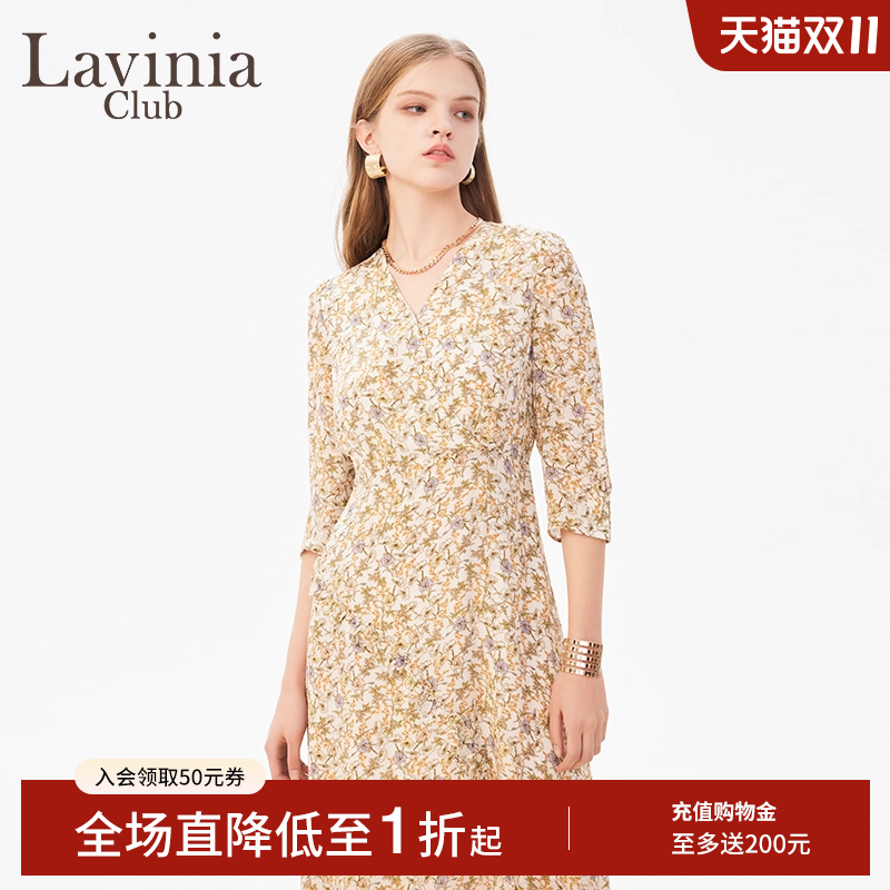 拉维妮娅法式小碎花清新连衣裙女春秋新品收腰茶歇裙J41L106