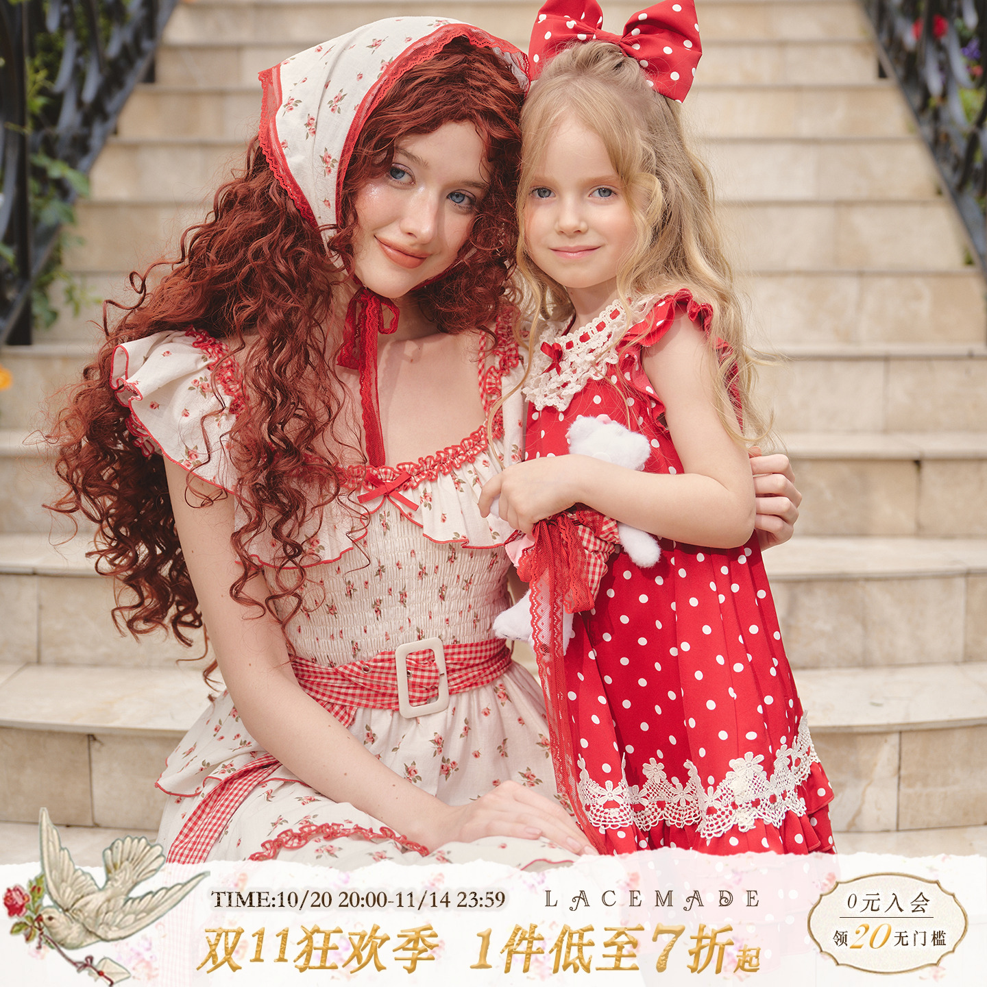 LaceMade 小红帽 法式田园风连衣裙碎花蛋糕塔裙长款收腰两穿夏女