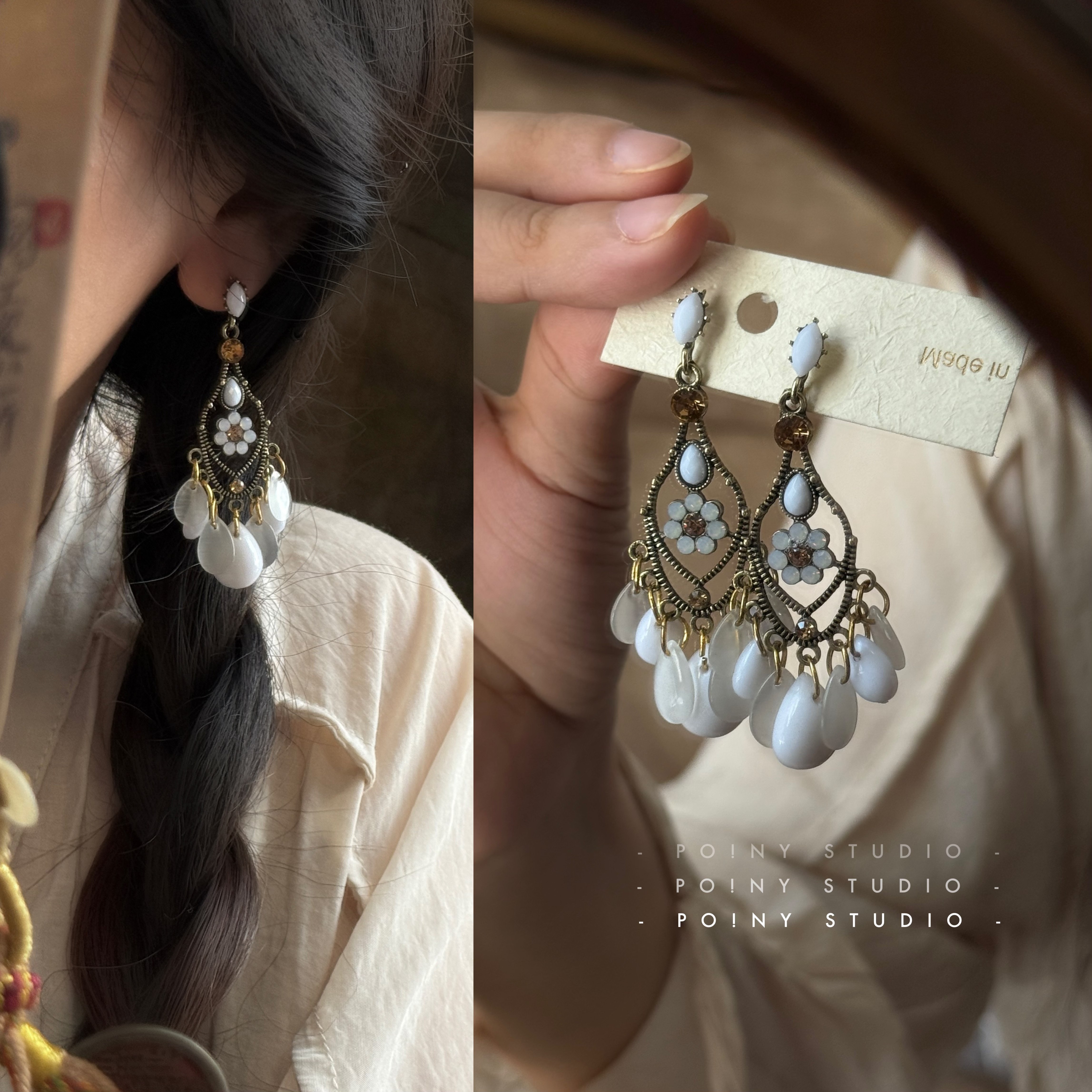 民族风复古贝壳耳环长款流苏精致轻奢气质高级度假风耳饰配饰耳夹