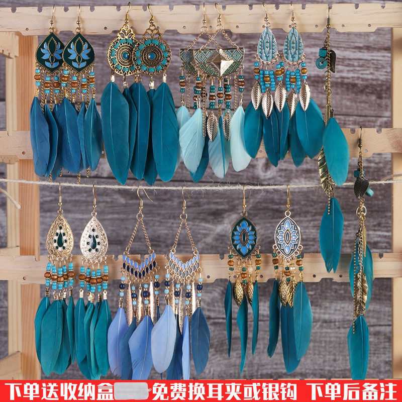 波西米亚民族风长款流苏羽毛耳夹复古度假风时尚云南旅游穿搭耳饰