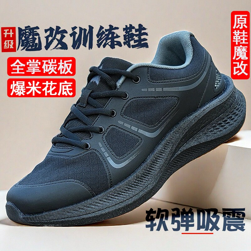 魔改作训鞋爆改碳板体能训练鞋暗改全掌碳板黑色跑步鞋超轻耐磨男