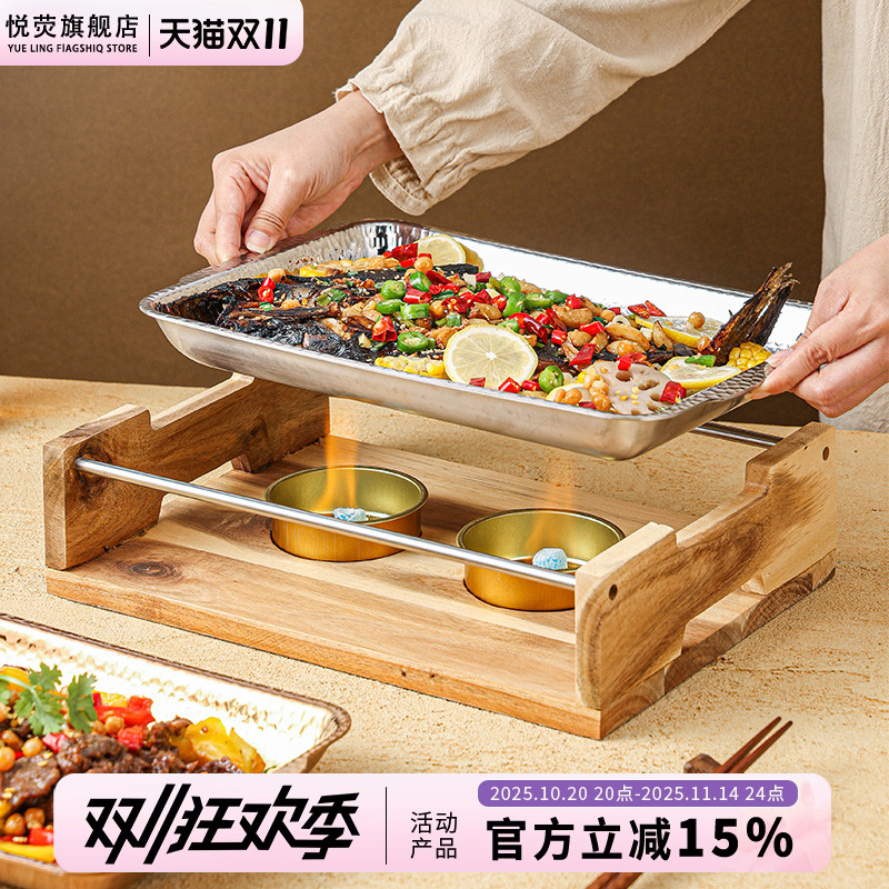 不锈钢烤鱼盘商用烧烤盘酒店餐具酒精炉电磁炉可加热长方形烤肉盘