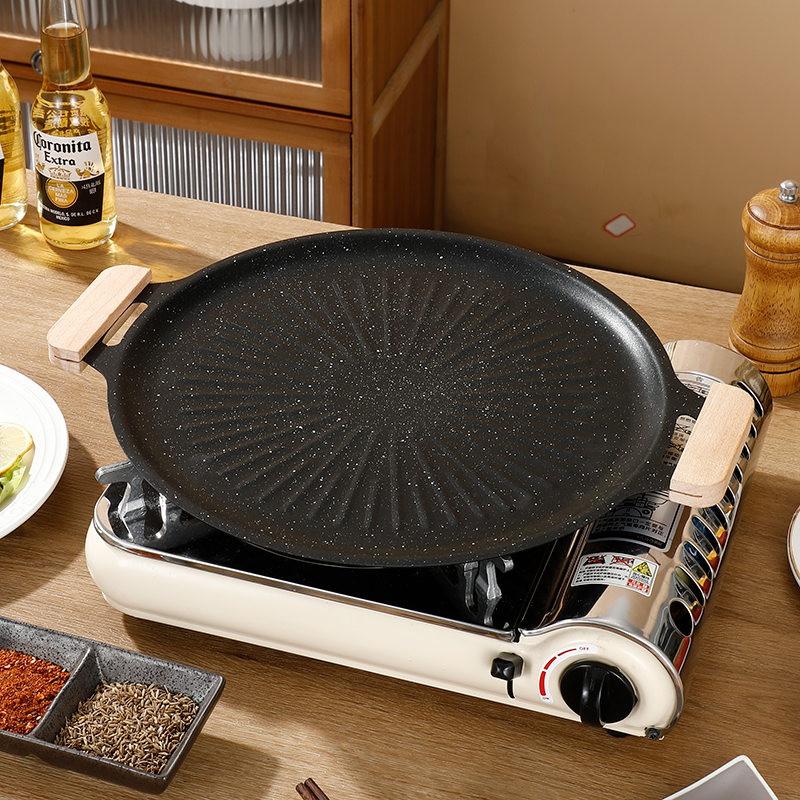 户外烤盘麦饭石韩式烤肉烧烤盘家用不粘卡式炉电磁炉专用便携铁板